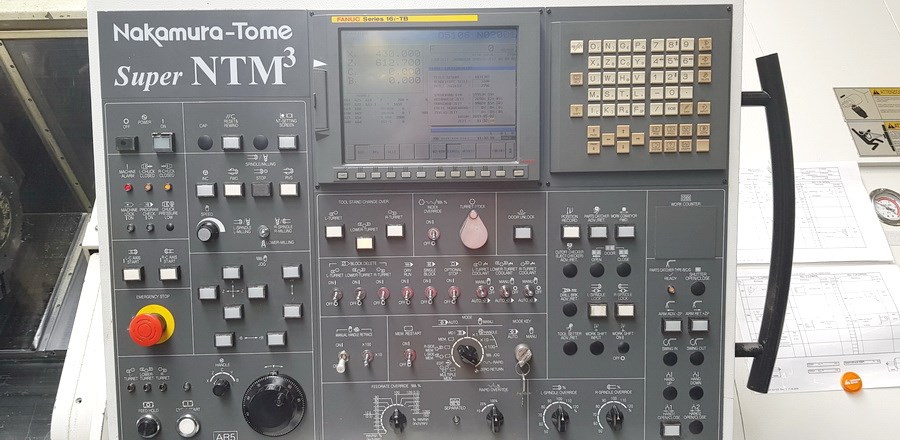 | Zusatzinformationen | Hochleistungs-CNC-Dreh- und Fräszentrum NAKAMURA TOME - Super NTM³ - Haupt- und Gegenspindel - 3 Revolver - 2 Y-Achsen - 2 C-Achsen - insgesamt 11 Achsen - Werkzeugantrieb - Stangenlademagazin - ca. 10.000h Spindelstd. |