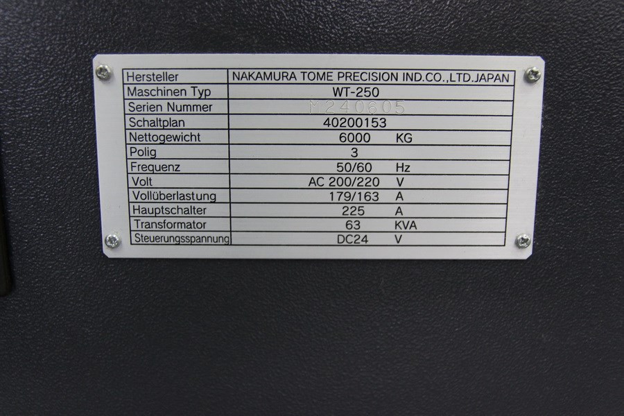 | CNC - Dreh- und Fräszentrum NAKAMURA TOME - WT 250 MMY - Haupt- und Gegenspindel - zwei Werkzeugrevolver - C-Achse - Y-Achse - angetriebene Werkzeugstationen - Spindelstunden: ca. 17.300h / 6.000h |