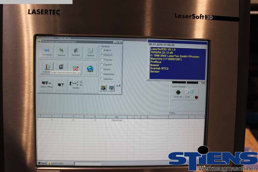| Steuerung | LaserSOFT3D V3.1.0 |